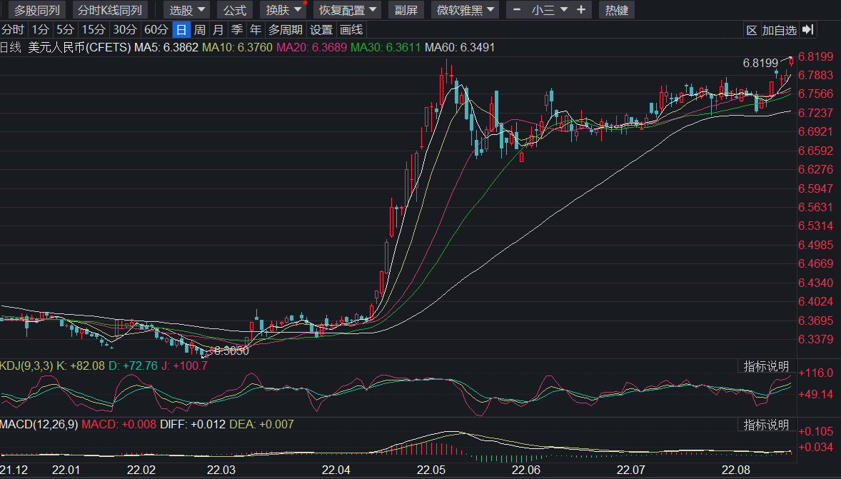 近期在岸人民币报价走势